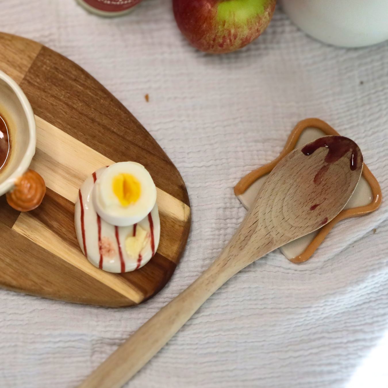 Pratique et adorable, le Repose-cuillère Tartine garde tes surfaces propres tout en ajoutant une touche mignonne à ta cuisine. 🍞